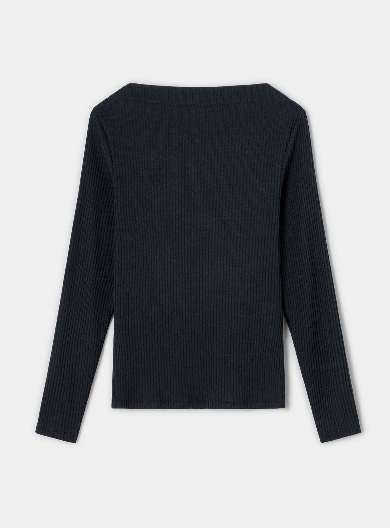 Black t-shirt made of light ribbed cotton. Fitted, longsleeve design, with straight neckline and embroidered logo on the front. Tight. Normal length.